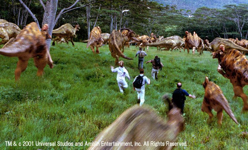 遺伝子操作でよみがえった恐竜たちが空から川から地上から人間に襲い掛かる!