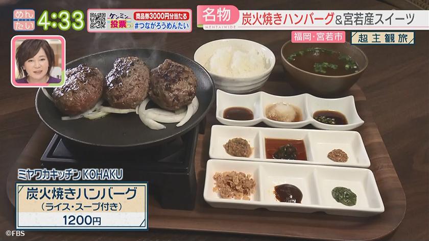 「ミヤワカキッチンKOHAKU」 炭火焼きハンバーグ 1200円 ※ライス・スープ付き