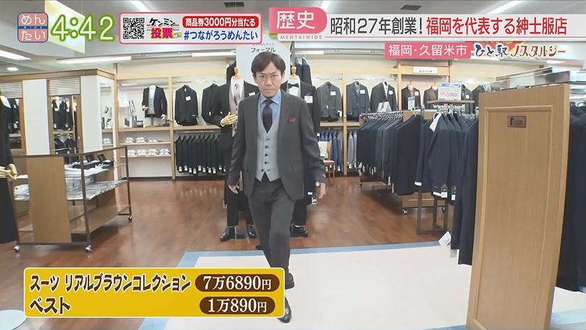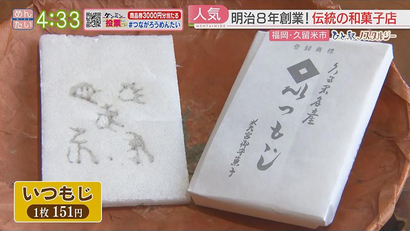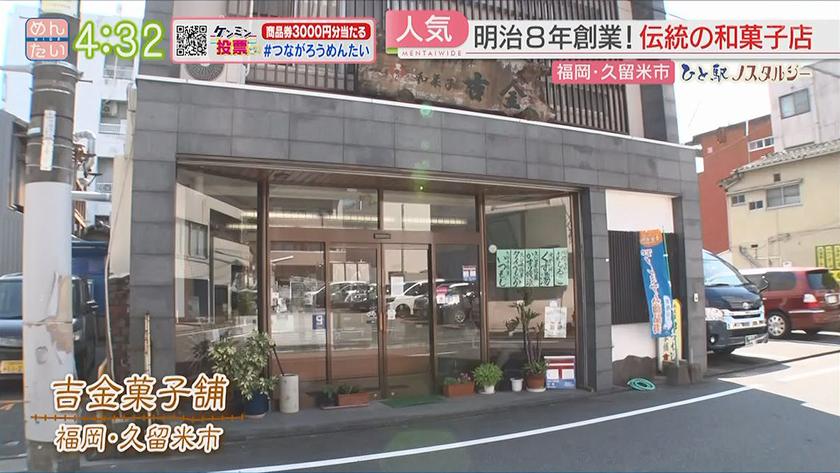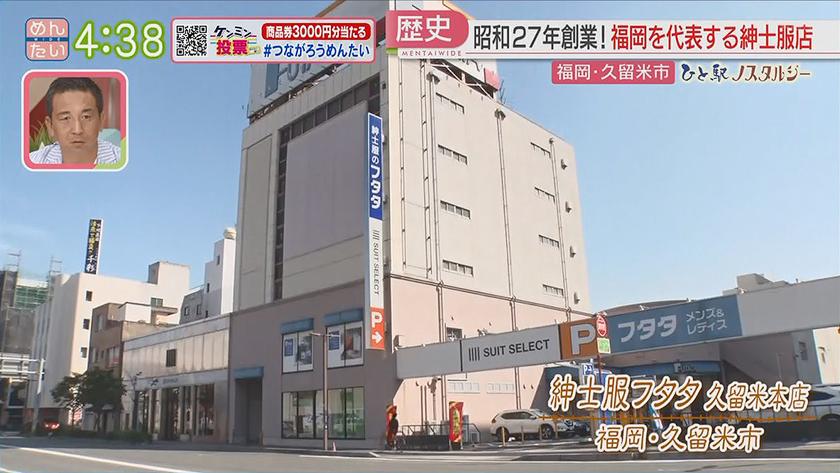 ひと駅ノスタルジー久留米駅周辺 2022年9月19日(月) 【問】吉金菓子舗 【住所】福岡県久留米市日吉町12-28 【電話】0942-32-5827 ・いつもじ 1枚 151円 ・タイヤ最中 1個 194円 【問】紳士服フタタ 久留米本店 【住所】福岡県久留米市日吉町1 【電話】0942-39-2001 ・スーツ リアルブラウンコレクション 7万6890円 ・ベスト 1万890円 ※ 掲載している情報は全て放送当時のものです。ご了承ください。 オンエア情報一覧へ戻る SEARCH過去の情報を探す オンエア日で検索 OA Calendarオンエア情報一覧 キーワードで検索 キーワード例:カレー 中央区 コーナーから検索 コーナー紹介へ 番組トップへ戻る 関連情報 番組公式SNS RECOMMENDおすすめ番組 記事一覧