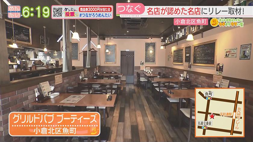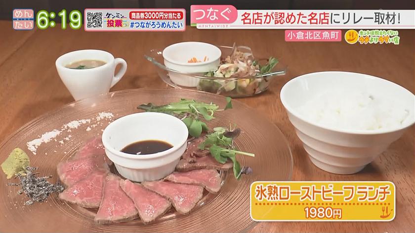 ホントは教えたくないウチよりウマい店ローストビーフ・サンドイッチ 2022年10月31日(月) 【問】グリルド パブ ブーティーズ 【住所】北九州市小倉北区魚町3-1-6 ウオマチヒカリテラス3F 【電話】093-482-1773 ・氷熟ローストビーフランチ 1980円 【問】ミッション 【住所】北九州市小倉北区室町2-2-9 【電話】090-5473-1179 ・ミッションビーフ 770円 ※ 掲載している情報は全て放送当時のものです。ご了承ください。 オンエア情報一覧へ戻る SEARCH過去の情報を探す オンエア日で検索 OA Calendarオンエア情報一覧 キーワードで検索 キーワード例:カレー 中央区 コーナーから検索 コーナー紹介へ 番組トップへ戻る 関連情報 番組公式SNS RECOMMENDおすすめ番組 記事一覧