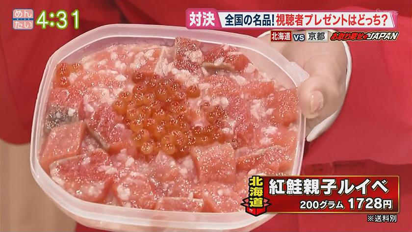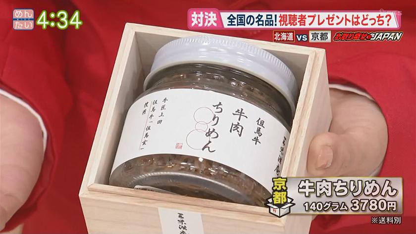 お取り寄せJAPAN北海道VS京都 2021年5月26日(水) 【問】誉食品(北海道・函館市) 【電話】0138-86-9291 ・紅鮭親子ルイベ 200グラム1,728円(送料別) 【問】三味洪庵(京都・京都市) 【電話】075-771-0952 ・牛肉ちりめん 140グラム 3,780円(送料別) ※ 掲載している情報は全て放送当時のものです。ご了承ください。 オンエア情報一覧へ戻る SEARCH過去の情報を探す オンエア日で検索 OA Calendarオンエア情報一覧 キーワードで検索 キーワード例:カレー 中央区 コーナーから検索 コーナー紹介へ 番組トップへ戻る 関連情報 番組公式SNS RECOMMENDおすすめ番組 記事一覧