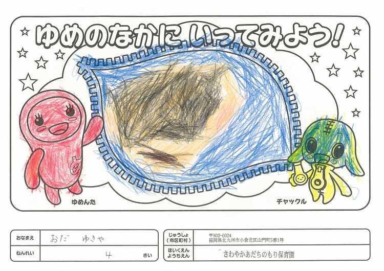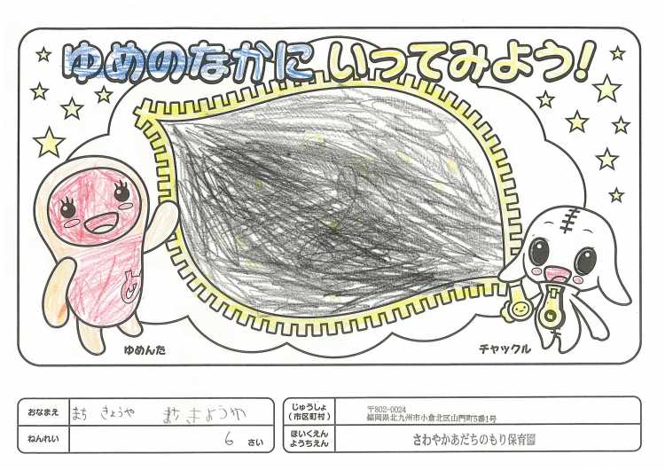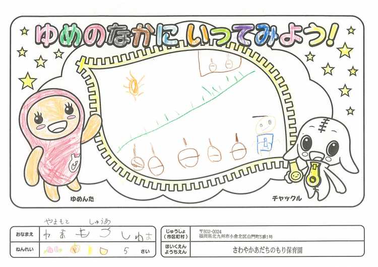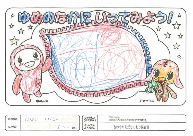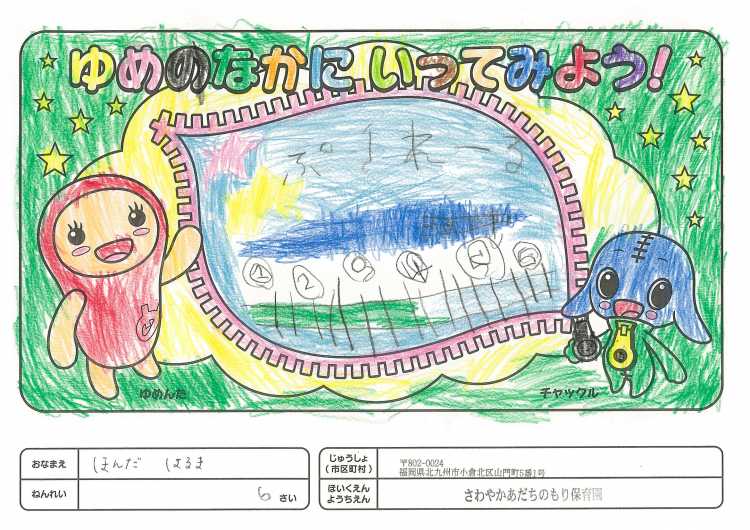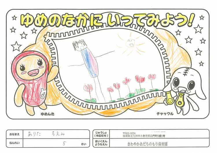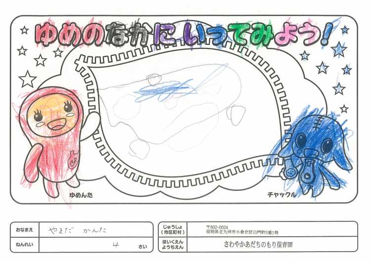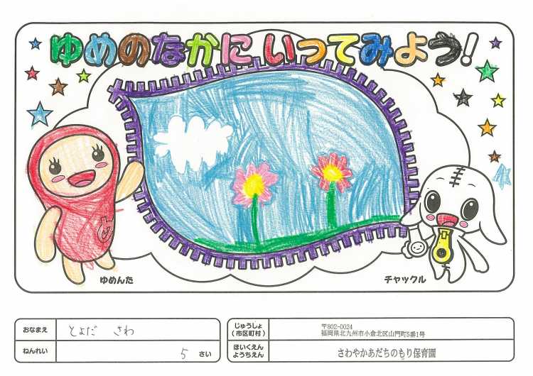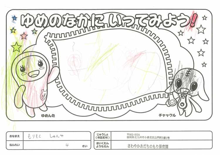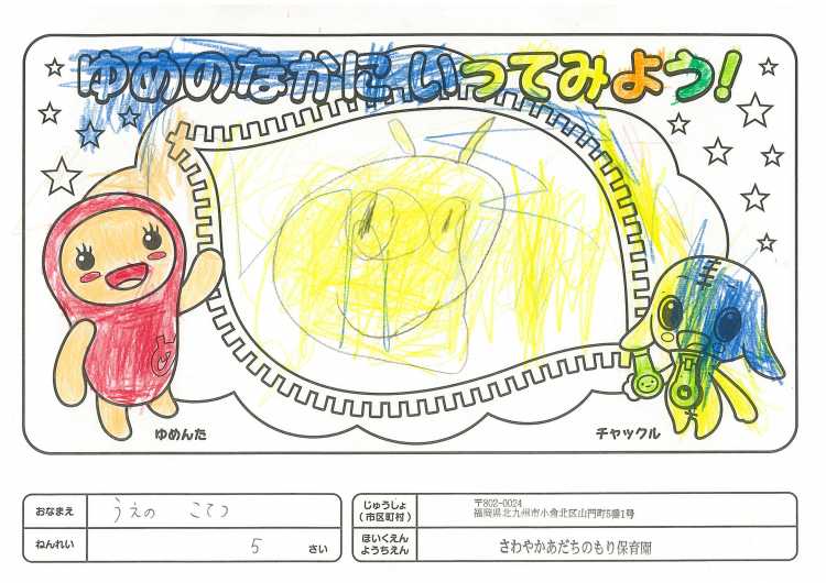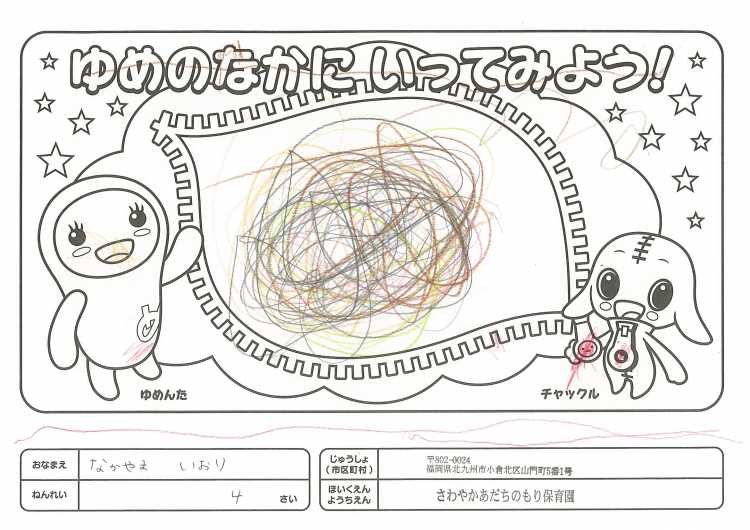 2019/11/25さわやかあだちのもり保育園(北九州市) かんそう開局50周年おめでとうございます。 先日委は絵本を送付していただきありがとうございます。 子どもたちは、とても喜んで読ませていただいています。 ぬりえも楽しくさせていただきましたので送付します。